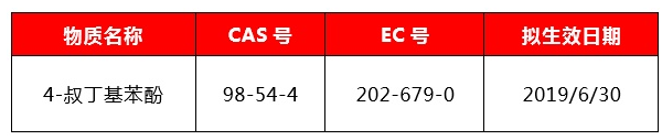 2019年2月7日,歐盟委員會向世界貿(mào)易組織(WTO)提交一項通報,擬將4-叔丁基苯酚(PTBP)加入到REACH法規(guī)中的SVHC候選物質(zhì)清單中。通報指出4-叔丁基苯酚具有環(huán)境內(nèi)分泌干擾特性。該項通報的擬生效日期為2019年6月30日,相關(guān)方可在通報之后的60天內(nèi)進行意見反饋。