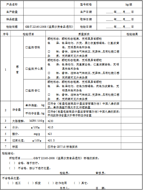 堅果炒貨《堅果炒貨食品通則》GB/T22165-2008